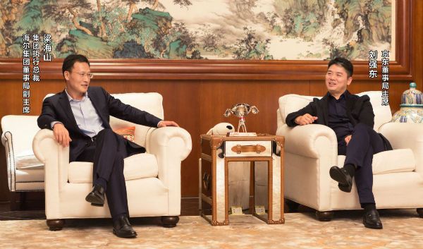京東集團董事局主席兼首席執行官劉強東與海爾集團董事局副主席、集團執行總裁梁海山合影