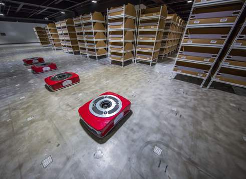 除了倉庫儲存環節的各項“高配”,奢侈品倉內所有的商品從收貨、上架,再到倉內訂單操作,一直到用戶的手中,都采用了全新獨立的流程,由專職的奢侈品倉工作人員進行全流程操作。用戶下單后,奢侈品倉的“地狼”AGV搬運機器人,可以將商品所在貨架搬運至包裝臺,實現“貨到人”的效果。