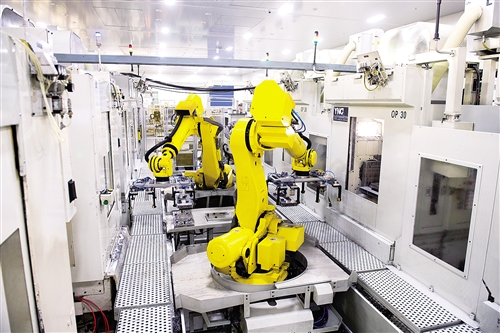 1月16日,機(jī)器人在瑞安市瑞明集團(tuán)智能化托盤(pán)線上搬運(yùn)物料。該生產(chǎn)線上,1個(gè)工人可操縱4臺(tái)機(jī)器人,輕松完成相當(dāng)于以前30個(gè)工人的工作。 新華社記者 翁忻旸 攝