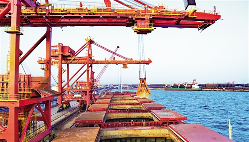 一艘輪船靠泊在秦皇島港礦石碼頭卸載。記者從河北省交通運(yùn)輸廳港航管理局獲悉,2017年該省秦皇島港、唐山港和黃驊港三大港口共完成貨物吞吐量達(dá)10.9億噸,比上年增長(zhǎng)1.4億噸,創(chuàng)歷史新高。 新華社記者 楊世堯 攝
