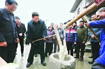 2016年2月1日至3日,習(xí)近平總書記來到江西看望慰問廣大干部群眾和駐贛部隊。在井岡山,習(xí)近平乘車沿著山路輾轉(zhuǎn)來到黃洋界腳下的茅坪鄉(xiāng)神山村,紅軍烈士后代左秀發(fā)一家正在準(zhǔn)備年貨。總書記來到他家門前,拿起木槌,同村民一起打糍粑。看到左家加工竹制工藝品,養(yǎng)娃娃魚,聽說年后要改造房子,總書記十分高興,希望一家人早日住上新房,生活越來越好。他叮囑老人的孫子好好學(xué)習(xí)。