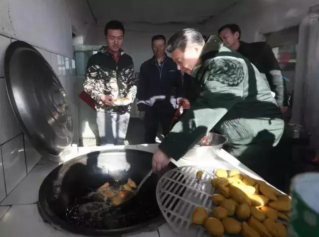 在徐學(xué)海家,得知徐學(xué)海之前因心臟病手術(shù)負債4萬多元,并且不能再干重活,習(xí)近平安慰他好好養(yǎng)病,鼓勵他樂觀堅強,囑咐當(dāng)?shù)馗刹可钊胙芯恳虿≈仑殕栴},采取及時有效的幫扶措施。徐學(xué)海請總書記同他們一起炸年糕,習(xí)近平高興地同他家人一起操作起來。