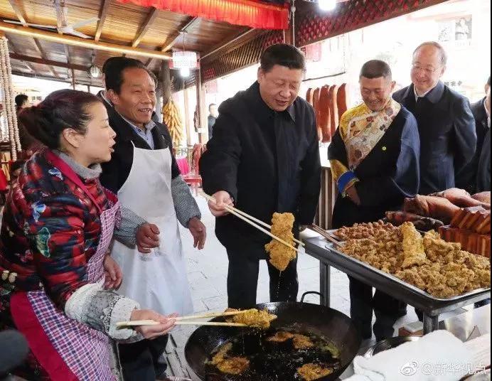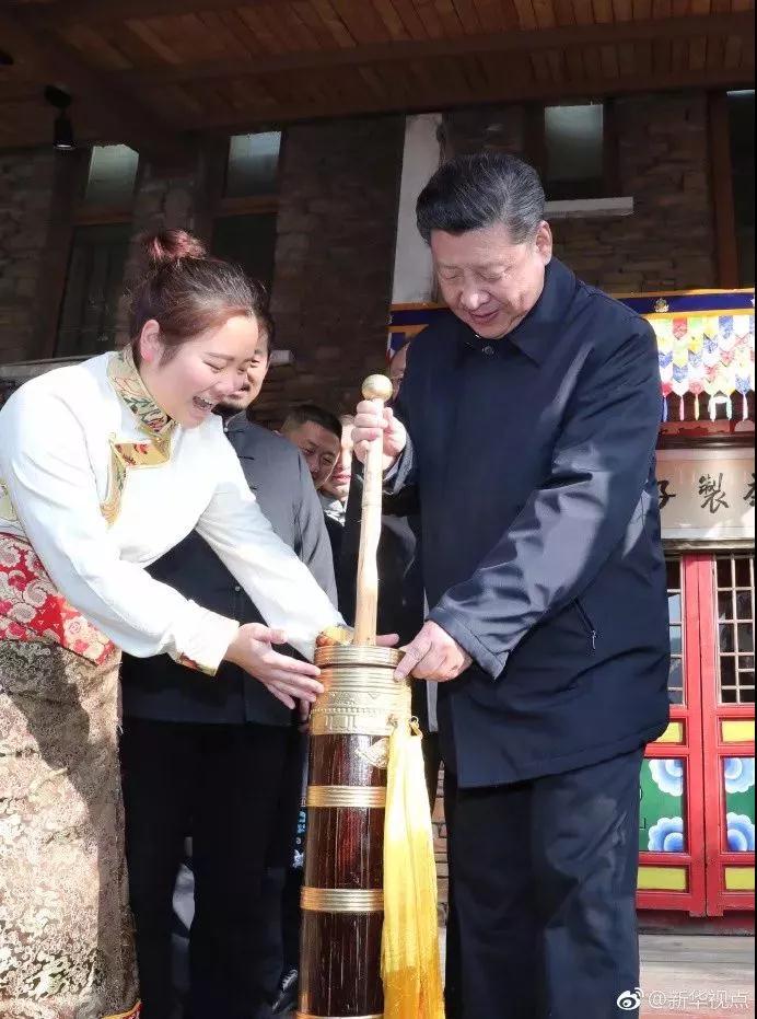 2018年2月12日,習(xí)近平總書記前往四川汶川縣映秀鎮(zhèn)考察。實地察看這里震后10年的發(fā)展振興情況。在當(dāng)?shù)厝罕娊?jīng)營的制茶坊,總書記了解發(fā)展茶產(chǎn)業(yè)帶動群眾致富的情況,還親自操作打酥油茶。在村民開辦的飯店,總書記問生意怎么樣,一家人的生活過得好不好。他還體驗了炸酥肉和磨豆花的過程。總書記轉(zhuǎn)動磨盤,笑著說:“很練臂力啊,真是越磨越帶勁。”現(xiàn)場響起陣陣歡聲笑語。
