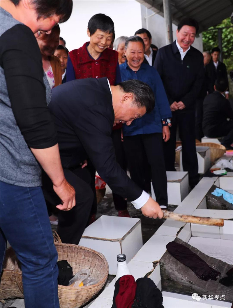 總書記接過棒槌捶打衣服的動作,很接地氣,引來鄉(xiāng)親們一片掌聲。其實,總書記過去在調(diào)研考察時,這樣接地氣的暖心舉動還有不少。