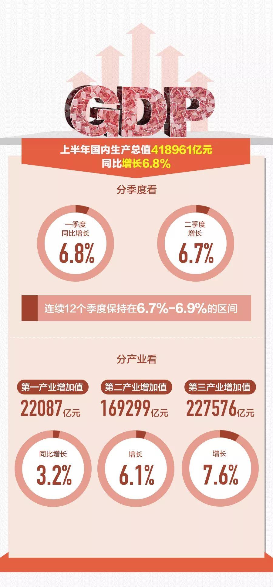 2018年一季度GDP同比增長6.8%,二季度增長6.7%,連續十二個季度穩定運行在6.7%到6.9%這樣一個中高速區間。