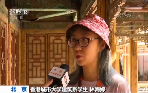 香港城市大學建筑系學生林海婷說,我是建筑系,以前就沒有什么大的機會去參與修復的工作,都是坐在教室里面設計,都是對電腦。可是這是第一次爬到那么高的頂上去修復,還有彎腰,就覺得挺辛苦,不過還是很有趣。在宮廷劇里面都一直有看過一部分,就是后宮。這次是第一次親自接觸那些文物、古建筑,所以我覺得很壯觀,還有北京都是一個很好的城市。
