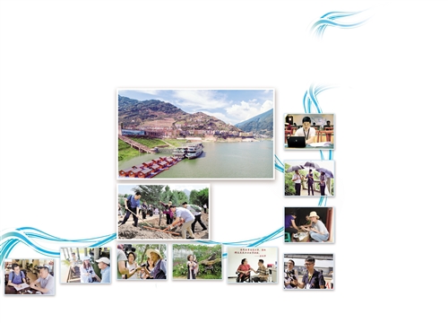 本報記者李會(左)在貴州省湄潭縣湄江街道金花村七彩部落采訪。