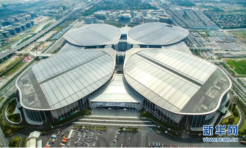 鳥瞰上海國家會展中心(國家會展中心供圖)。圖片來源:新華社