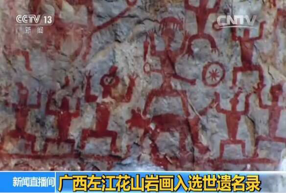 花山巖畫局部截圖。(圖片來源:央視網)