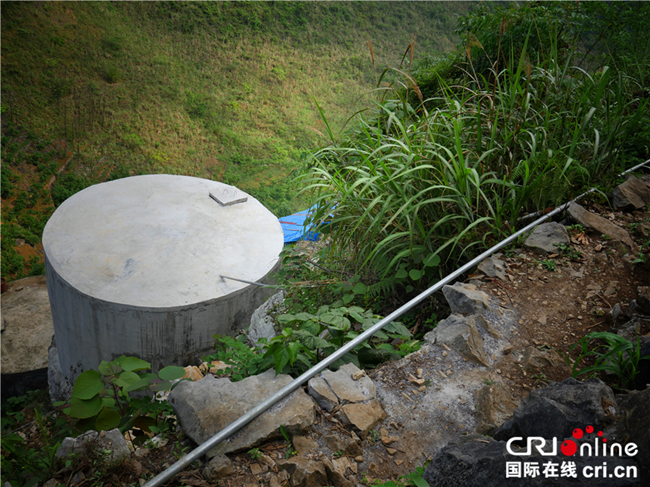 “幸福泉”沿線分流到的一處村民家庭水柜,雨季的時候泉水充足,他們可以和學校同時使用山泉水。(圖片來源:國際在線)