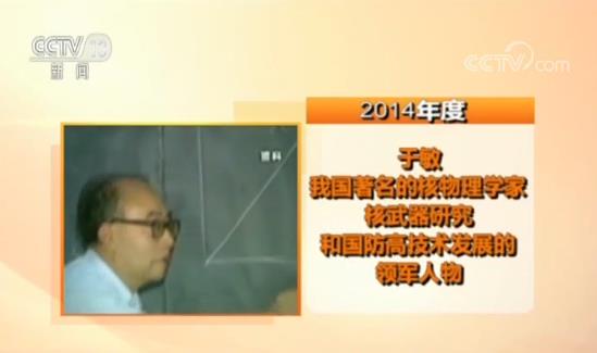 2014年度——授予我國著名的核物理學家、核武器研究和國防高技術發展的領軍人物于敏