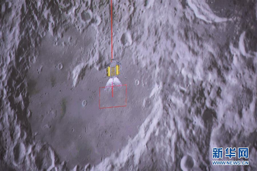 圖為1月3日在北京航天飛行控制中心拍攝的降落過程(示意圖)。 新華社記者 金立旺 攝