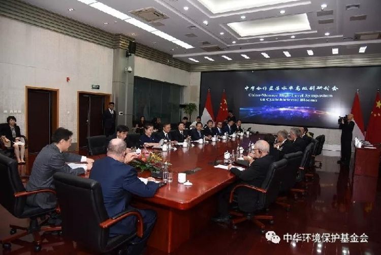 2018年9月7日,摩納哥元首阿爾貝二世親王參加在生態(tài)環(huán)境部衛(wèi)星環(huán)境應(yīng)用中心舉辦的“中摩合作藍(lán)藻水華高級別研討會”。圖片來自中華環(huán)保基金會