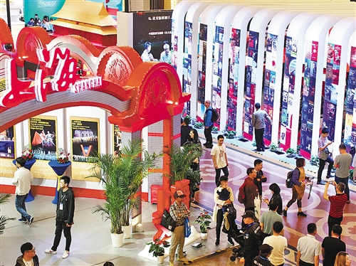 5月19日,觀眾在第十二屆中國藝術(shù)節(jié)演藝及文創(chuàng)產(chǎn)品博覽會上參觀。新華社記者 任 瓏攝