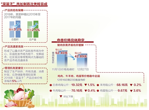 此外,“菜籃子”管理機制更健全。36個城市制定了生產扶持、市場流通、消費補貼、應急儲備等調控政策,2018年“菜籃子”產品總體價格漲幅在5%以內。