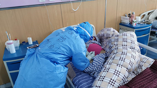 到武漢我被分配在湖北省婦幼保健院光谷院區(qū)感染二科,這是一個(gè)危重病區(qū),收治的大部分都是老年患者。剛到武漢的第二天,我護(hù)理一位耄耋之年的老爺爺,在打針時(shí),他隨口說了一句有沒有凳子,站著吃飯很費(fèi)力。打完針,我就急忙給他找了個(gè)凳子送過去。老爺爺說自己是個(gè)退伍老兵,說完鄭重其事地站起來向我敬了一個(gè)軍禮。那一刻,我不由自主地站直了身子,握緊了右拳,心中默念:“加油!”那一刻,我覺得我全身每一顆細(xì)胞都熱血沸騰!