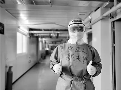 來自空軍軍醫大學的郭永博先期隨醫療隊支援武昌醫院,后轉至火神山醫院繼續戰斗。