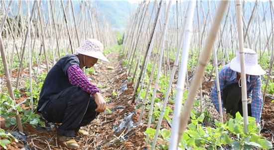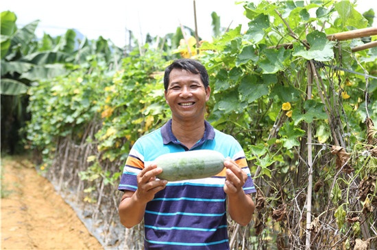 這些年,新立村村民不等不靠,不悲不怨,他們通過翻新土地,大興基建,并利用右江河谷充沛的雨露陽光,將房前屋后的大片沃土種滿了瓜果蔬菜。村民周文革這些年種上了冬瓜和圣女果。夏天,周文革在地里種上冬瓜,到了冬季,土地不用翻新,可繼續種植圣女果,農作物“無縫連接”,全年都有蔬果豐收。同時,還有蔬菜種植專家去到地里指導村民增產增收。“平時,農活不忙的時候,我還到鎮上做一些零工,一天的工錢有100元。這些年,我的收入一年比一年好。”最近,周文革的冬瓜迎來了豐收,在地里忙著采摘冬瓜的他笑容也越來越深。