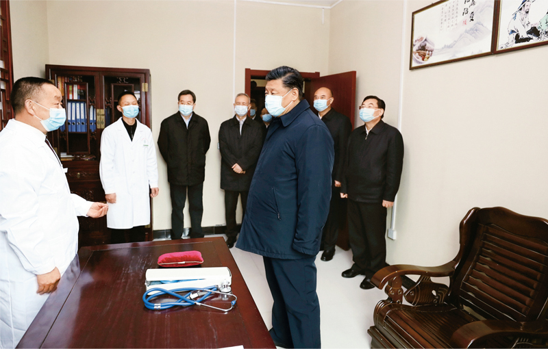 2020年4月20日至23日,中共中央總書記、國家主席、中央軍委主席習近平在陜西考察。這是4月21日,習近平在安康市平利縣老縣鎮衛生院,了解基層衛生防疫、醫療保障工作。 新華社記者 鞠鵬/攝