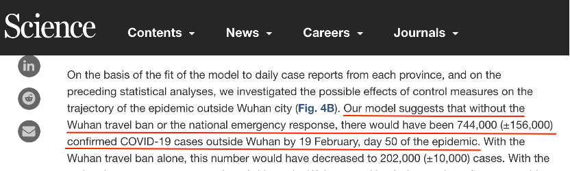 美國《科學》雜志4月發(fā)表的一項研究顯示,中國在疫情暴發(fā)最初50天采取的嚴格防疫措施,可能避免了數(shù)十萬病例的發(fā)生。文章的作者之一、牛津大學客座教授克里斯托弗·戴伊在聲明中表示:“中國的防控措施似乎已經(jīng)奏效,他們成功切斷了傳播鏈,阻止了感染病例和易感人群的接觸!