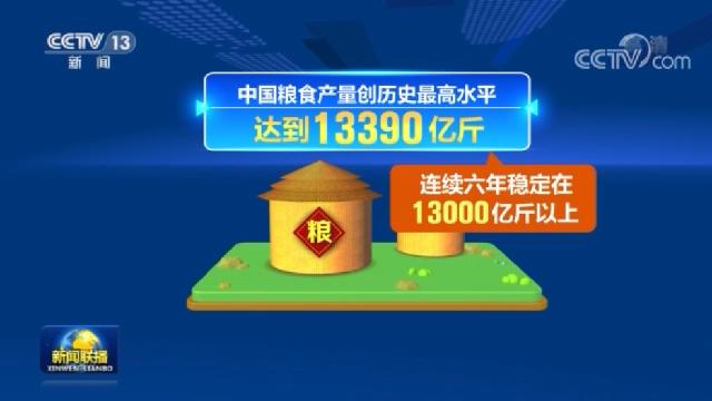 2020年,面對新冠肺炎疫情和不利天氣影響,中國糧食產量創歷史最高水平,達到13390億斤,連續六年穩定在13000億斤以上。