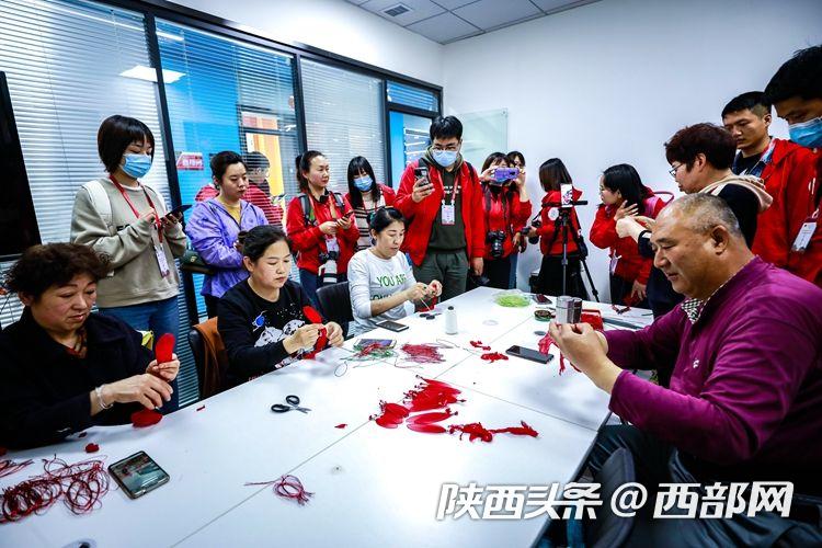 西部網訊(記者 劉望) 一折、一卷、六朵花瓣整齊羅列,細鐵絲緊緊繞圈固定,一朵火紅的手工花便成型了。“這個是我們的一些手工藝品,都是有延安特色的,如果你們想學的話,隨時來,我們這里免費培訓。”3月30日,在延安市寶塔區電商直播融合孵化服務中心的直播間里,60歲的退休工人董智玲正在直播間里給網友直播手工藝品制作,引來了眾多記者的圍觀。