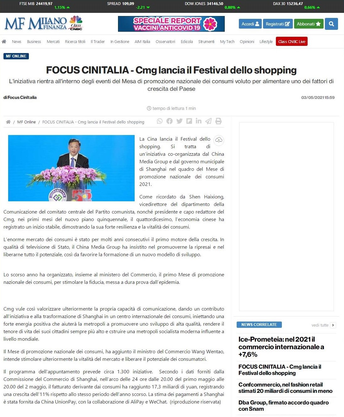 活動引發海外媒體廣泛關注。截至5月4日,美國全國廣播公司CNBC財經頻道、《歐洲時報》德文網、《北歐時報》網站、意大利《米蘭財經報》網站、意大利《日報》網站、挪威國家廣播電視一臺(NRK 1)、日本最大的中國資訊門戶網站Record China、印度《每日力量報》網站、土耳其經濟觀察網、《哈薩克斯坦實業報》網站、保加利亞新聞門戶網站“24小時”、埃及《今日消息報》、尼日利亞《領導者報》網站、尼羅河國際電視臺(Nile TV International)、越南國家電視臺綜合頻道(VTV1)、印尼艾爾辛達新聞網、柬埔寨Freshnews網站以及香港大公報、文匯報紛紛轉載轉引。多家媒體表示,中國經濟在“十四五”規劃的第一個春天迎來穩健開局,消費市場規模持續擴大成為發展動力。