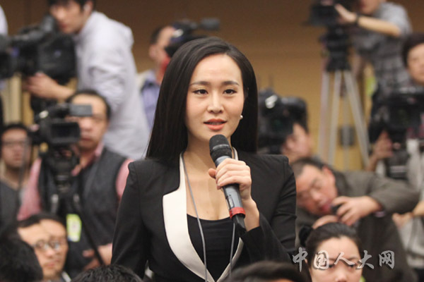 3月11日上午,十二屆全國人大二次會議在梅地亞中心舉行記者會,中國人民銀行行長周小川等五位嘉賓就“金融改革與發展”的相關問題回答中外記者的提問。圖為湖南衛視記者提問。羅榮 攝