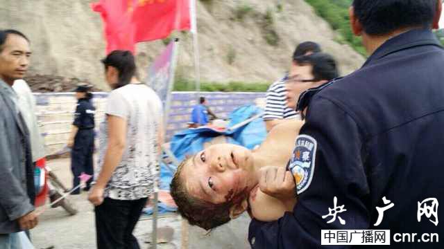 走到進入龍頭山災區的沙壩村岔路口時,由于要進入災區太多,很快就形成交通堵塞,民警現場疏導交通,就在這時,從樹林里跑出一個抱著孩子的男子,孩子光著上身,頭發上、臉上、褲子上粘滿了泥漿,頭部和手上都在流血,可能是由于疼痛和遭受驚嚇,這個孩子全身發抖,而男子已經筋疲力盡,快跑不動了。情況緊急,撒闖趕快跑到男子面前,一把接過孩子,邁開步子,就朝有醫生的方向跑,孤立無助的孩子爭著雙眼,雙手緊緊抱著撒闖的肩膀,腦子里滿是救人念頭的撒闖抱著孩子,不知道跑了有多遠,把孩子送給醫務人員,緊接著孩子被送上了救護車。