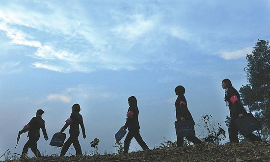 為充實公共法律服務基層隊伍,成都市蒲江縣法律援助中心于2017年初成立“蒲江縣女子法律援助服務隊”,“蒲江縣女子法律援助服務隊”由熊智瑤等10名“90后”女律師組成,她們?yōu)楫數鼐用窳x務提供法律援助、法律咨詢等公共法律服務。圖為12月26日一大早,“蒲江縣女子法律援助服務隊”成員前往光明鄉(xiāng)金花村,回訪一個勞務者受害責任糾紛案件的當事人。 本報記者李向雨攝