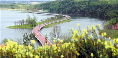 成都科學城一棟棟充滿時尚氣息的建筑身后,便是興隆湖。如果說興隆湖像一塊翡翠,那環湖景觀帶便是纏繞在這塊“翡翠”上的“絲帶”。