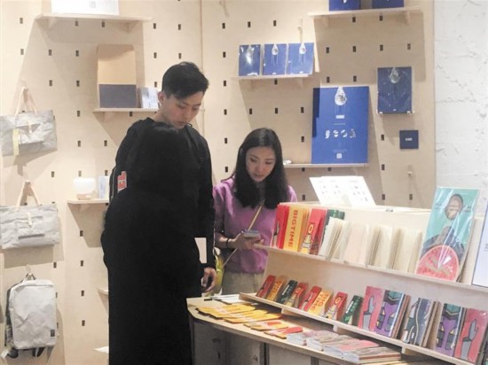 讀者在三聯韜奮書店(成都)欣賞文創產品