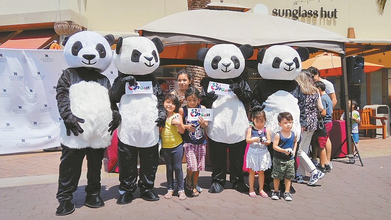 洛杉磯的小朋友爭相和“大熊貓”合影。 圖片由省旅游發(fā)展委員會提供