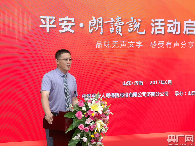 作為本次活動的主辦單位平安人壽濟南分公司近年來為社會帶來商業價值、創造利潤貢獻的同時積極投身于各類公益事業,在教育公益、環境公益、紅十字公益及社群公益等四大領域深耕前行。一年一度的客服節就是濟南分公司回饋客戶、回饋社會的集中體現。希望通過“朗讀說”這個活動,帶動更多人參與,掀起齊魯大地的讀書熱潮!”