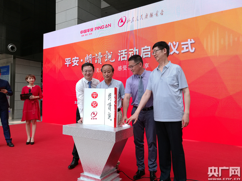 平安人壽濟南分公司副總經理馮濤,平安人壽濟南分公司副總經理陳侃,山東廣播電視臺副總編輯潘士強,山東人民廣播電臺總監張新剛共同為《朗讀說》活動按下啟動按鈕。