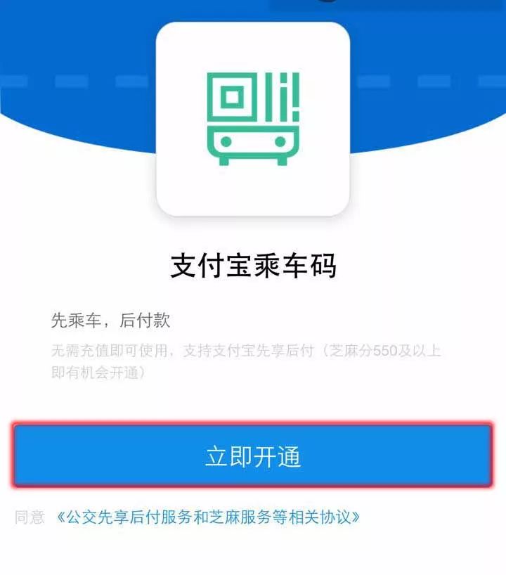 激活乘車碼功能:支付寶主界面選擇“更多”,進入后選擇“城市服務”,進入后選擇“交通”,進入后選擇“乘車碼”,然后激活功能即可。注意,首次激活過程略微繁瑣,激活后無需再次激活。
