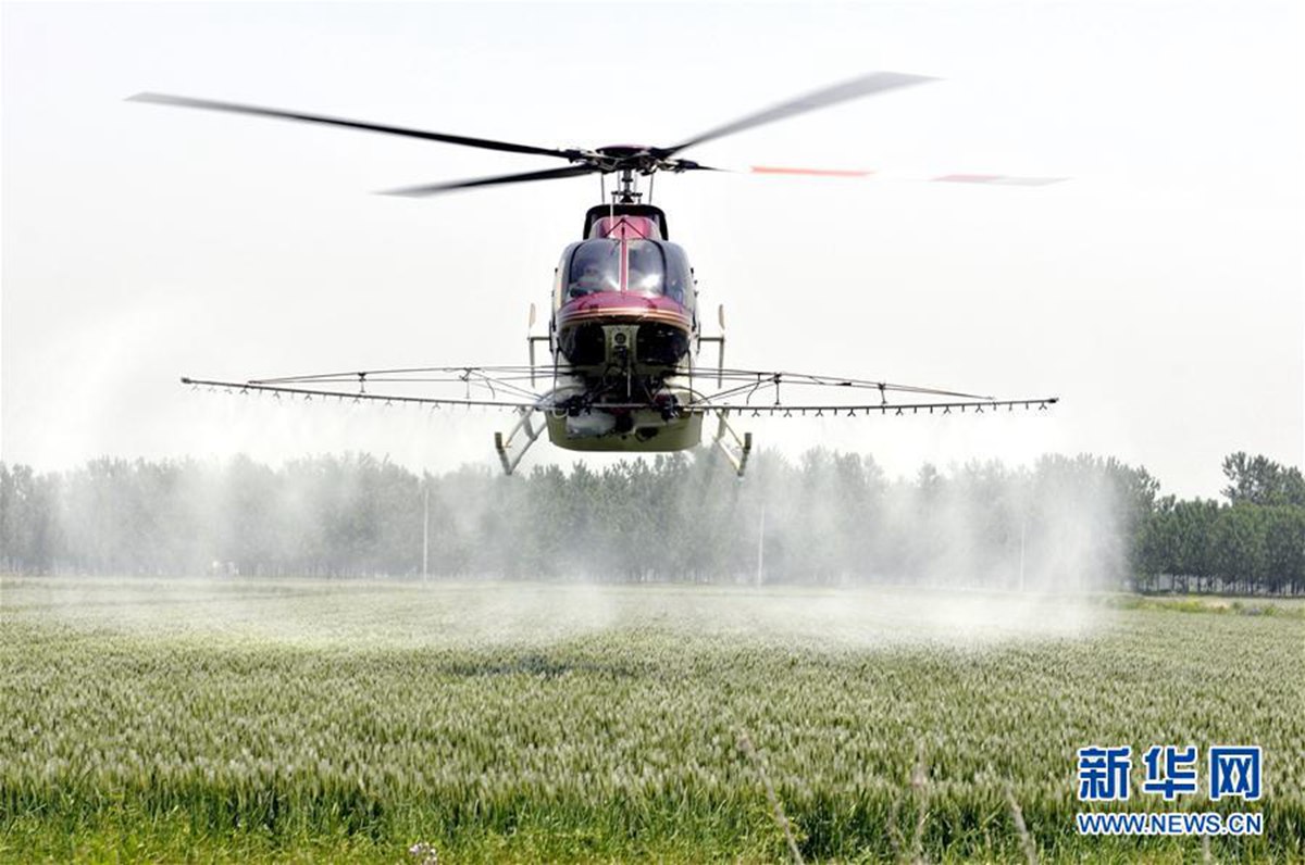 利用飛機給小麥噴藥,不但省水、省藥、省工、省時,還解決了農民一家一戶防治難的問題