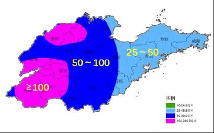 過程降水量山東全省平均50~70毫米,部分地區(qū)100毫米,局部可達(dá)200毫米以上;大范圍強(qiáng)降雨主要集中在8月2-3日。
