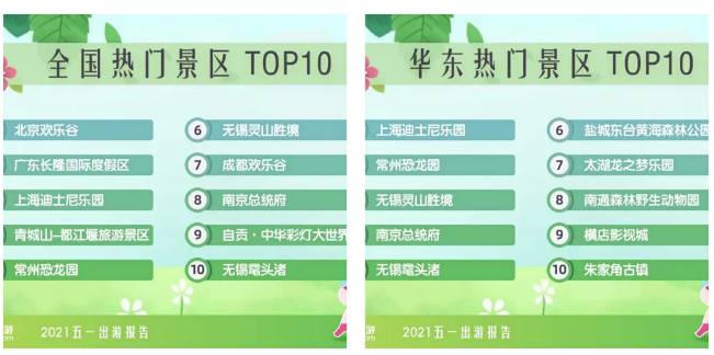 2021年“五一”黃金周,全國各地景區門票、住宿、租車預定量均大幅反超疫情前,全面刷新歷史峰值,主題樂園、動物園、風景名勝區均在熱門景區前列。