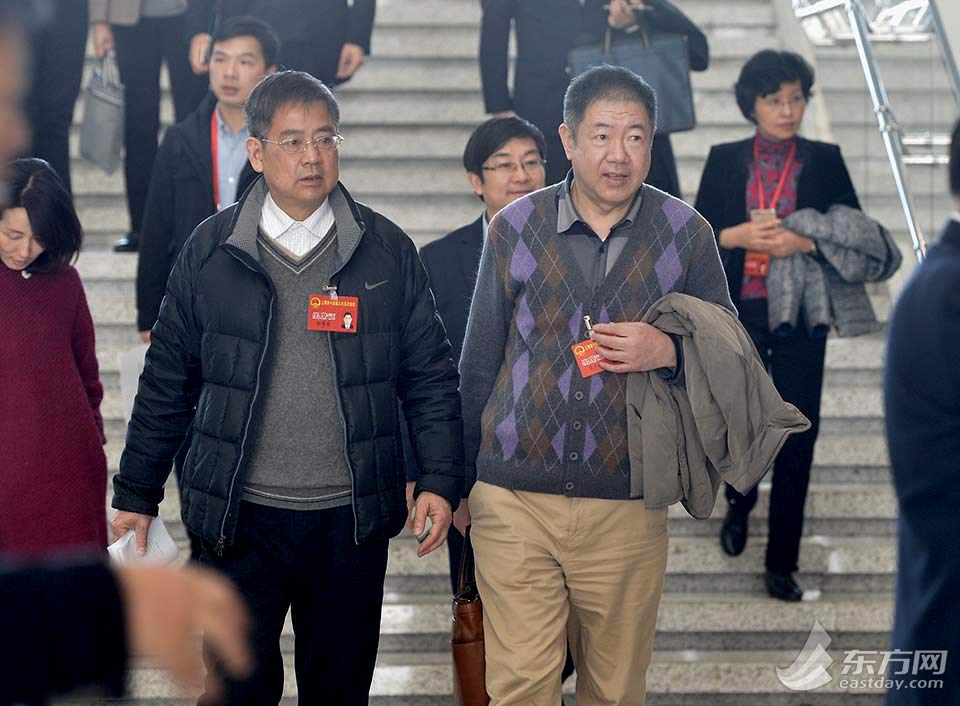 今天下午,上海市第十四屆人民代表大會第五次會議在上海世博中心舉行預備會議。會議開始前,來自全市各行各業的人大代表們邊交流邊步入會場。
