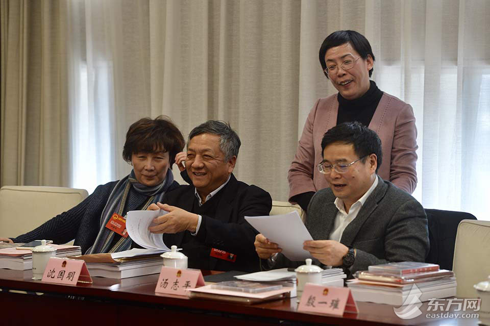 今天下午,上海市第十四屆人民代表大會第五次會議在上海世博中心舉行預備會議。會議開始前,來自全市各行各業的市人大代表就一年來的履職情況和今年關心的話題展開交流討論。