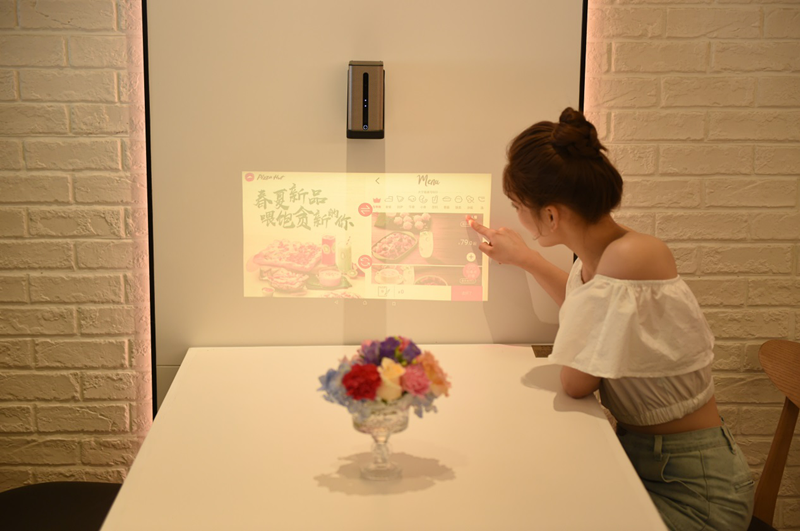除了“情緒地帶”,智慧餐廳還提供了多元化的互動(dòng)服務(wù)。門店等位區(qū)有一整面具有奇幻動(dòng)感效果的投影互動(dòng)墻,通過獨(dú)特的觸摸啟動(dòng)可以探索必勝客的比薩從原料種植、加工、生產(chǎn),一直到制作成品、奉客、外送等一系列過程,為顧客提供趣味十足的多感官虛擬互動(dòng)體驗(yàn),讓無聊的等位時(shí)間也變得興味盎然。