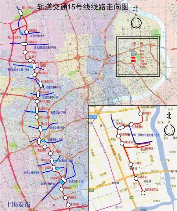 15號線工程自顧村公園站至紫竹園區站,全長39.8公里,車站30座。目前已開工車站14座。