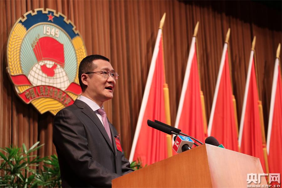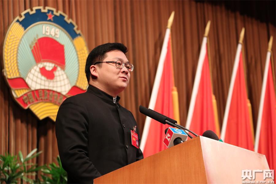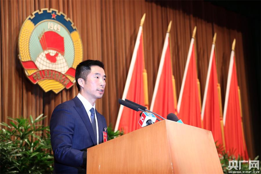 王宇委員代表共青團上海市委員會、上海市青年聯(lián)合會發(fā)言,發(fā)言的題目是《發(fā)展實體經(jīng)濟 不能讓青年人走開》(央廣記者傅聞捷 攝) -
