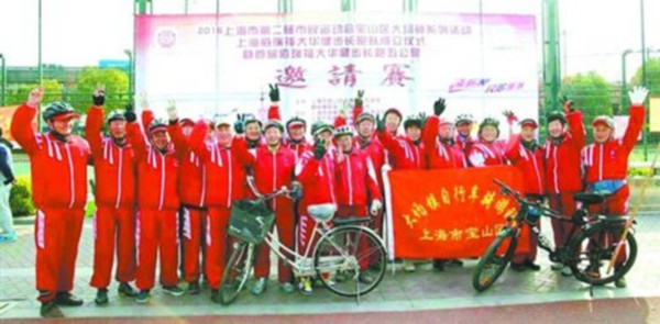 圖片說明:大場(chǎng)鎮(zhèn)自行車騎游隊(duì)參加市民運(yùn)動(dòng)會(huì)時(shí)合影