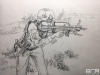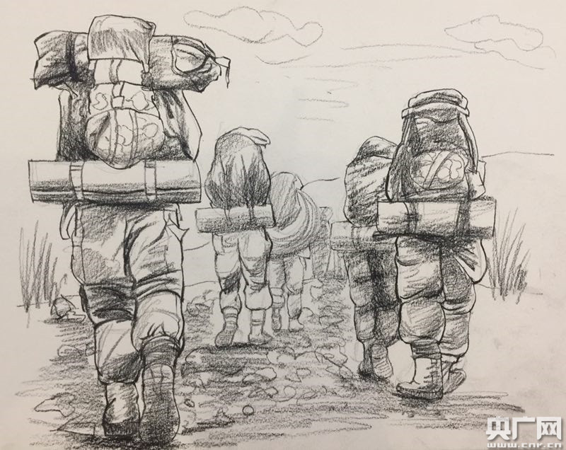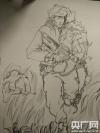 由于軍隊的特殊性,上海第二工業(yè)大學(xué)的同學(xué)們實地走訪軍營的時間是短暫的。有的訓(xùn)練場景先用相機拍攝,再進(jìn)行后期的速寫創(chuàng)作。更多的作品,是同學(xué)們查閱相關(guān)資料和圖集后完成的。 -