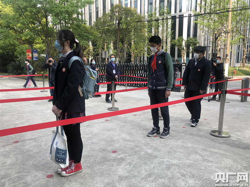 據了解,今天復課的高三和初三年級加起來大概280多人。根據上海市規定,超過100人的學校校門口配備熱像式篩檢儀,以保證學生快速通行。整個學校配備了14名老師和4名安保人員, 整個進校非常平穩。