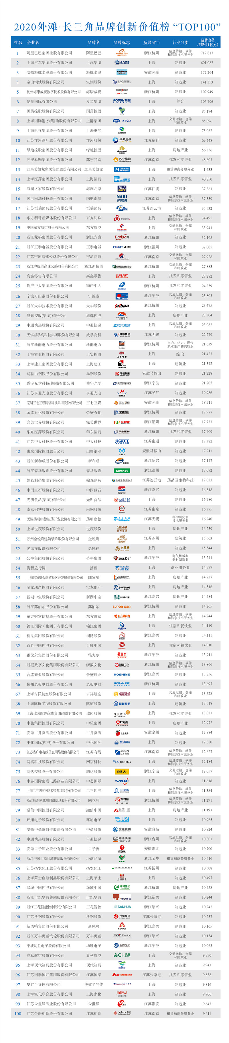 今年,為更好的助推國家長三角發(fā)展戰(zhàn)略和上海“四大品牌”建設(shè),首次發(fā)布了“2020年外灘·長三角品牌創(chuàng)新價值榜(TOP100)”和再次發(fā)布“2020年外灘·上海品牌創(chuàng)新價值榜(TOP50)”。