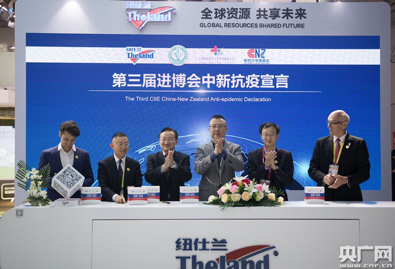 央廣網(wǎng)上海11月9日消息(記者楊靜)11月8日,在進博會紐仕蘭展臺舉辦了一場特別的活動——中新抗疫宣言,由上海市醫(yī)師協(xié)會會長徐建光、新中商會特別代表Terry Lee到場一同見證。