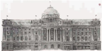 據新民晚報消息 近日,外灘22幢歷史老建筑變身成為純水墨畫,在劉海粟美術館的展廳內一面鋪開,這是中國畫壇第一次用純水墨語言描繪外灘萬國博覽會的全部建筑。